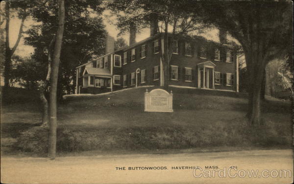 Front: 473. THE BUTTONWOODS. HAVERHILL, MASS. Back: 3 Tm BOSTON, Mass. PHOTO GELATINE AMERICAN ART PusT CARD Co.