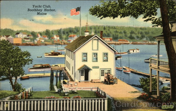 Front: Yacht Club, Boothbay Harbor, Maine LL 1B-H1777 Back: 350 CANO AUG 20 830 19448 KE GEORUZ Emeline Loslik Box 202 Babylon, L.I. New York