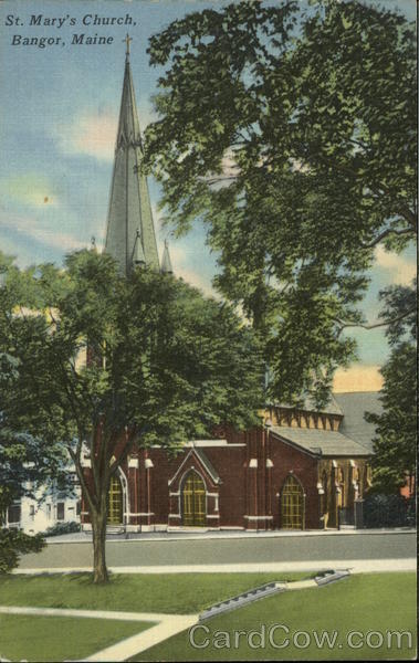 Front: St. Mary's Church, Bangor, Maine Back: 81206 "TICHNOR QUALITY VIEWS" REG. U. S. PAT. OFF. MADE ONLY BY TICHNOR BROS., INC., BOSTON, MASS. PUB. BY BANGOR NEWS AGENCY, BANGOR, ME.