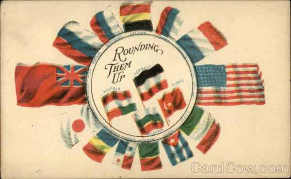 Front: RUSSIA MONTENEGRO BELGIUM ROUNDING THEM UP AUSTRIA PANAM NERE RRIA BULGARIA PORTUGAL TURKEY GUBA ATV $329/ Back: 100 ©Illustrated Postal Card & Nov. Co. N. Y. Xx Xx J POST. CARD CORRESPONDENCE. Viker PRINTED IN THE U.S.A.