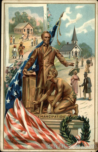 Front: 21 SEHOOL MG EMANCIPATION Back: INDO HANK Raphael Tuck & Sons' Post Card Series No.155 "LINCOLN'S BIRTHDAY" ART PUBLISHERS TO THEIR MAJESTIES THE KING & QUEEN BY APPOINTMENT FERIES ARTISTIC RAL CARTE POSTALE. POSTKARTE. TUCK'S POST CARD