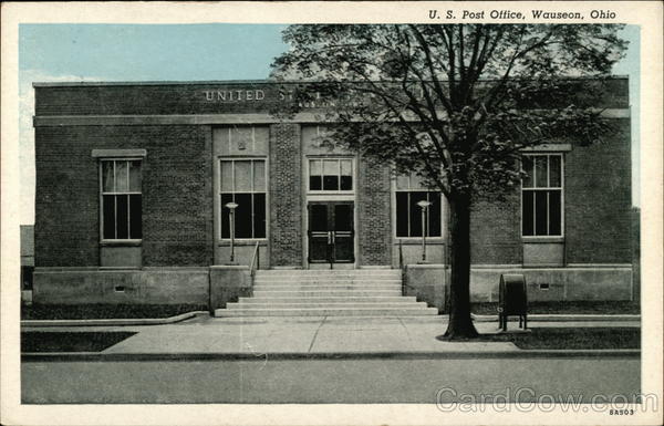 Front: U. S. Post Office, Wauseon, Ohio 8A503 Back: GENUINE CURTEICH-CHICAGO “C. T. BLUE SKY" POST CARD-(REG. U.S. PAT. OFF.) 3 -
