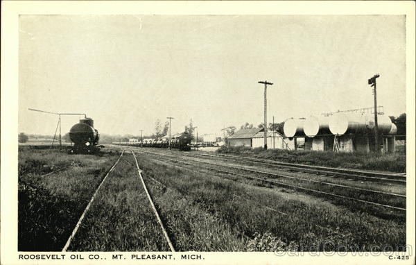 Front: ROOSEVELT OIL CO., MT. PLEASANT, MICH. C-425 Back: VIEW CLEAR MFD. BY WAYNE PAPER BOX & PRIG. CORP., FORT WAYNE. IND