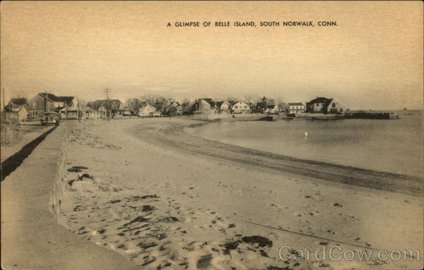 Front: A GLIMPSE OF BELLE ISLAND, SOUTH NORWALK, CONN. Back: ΡωΙ Σ«Σαοω υο • ago-MIwau zw3 >ORX A LOCAL VIEW contri MESSAGE HERE