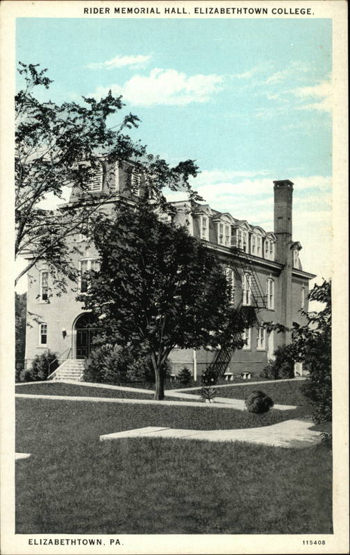 Front: RIDER MEMORIAL HALL, ELIZABETHTOWN COLLEGE, ELIZABETHTOWN, PA. 115408 Back: 5. PUBLISHED BY H. K. DORSHEIMER, ELIZABETH TOWN, PA. C. T. AMERICAN ART BLUE='S KY 00 си!