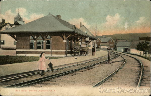 Front: Rail Road Station, Newport, N. H. Jun 0 Back: Published in Germany by G. W. Morris, Portland, Maine. One Cent for United States and Island Possessions, Cuba, Canada and for Foreign. 89304
