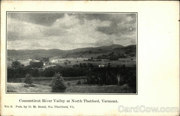Front: 828 www. No. 6. Pub. by D. M. Bond, No. Thetford, Vt. 33 Connecticut River Valley at North Thetford, Vermont. Back: Two CENTS