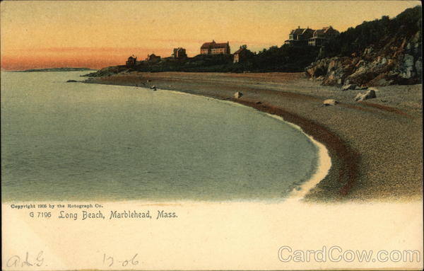 Front: Copyright 1905 by the Rotograph Co. G 7196 Long Beach, Marblehead, Mass. als 12-06 Back: (Germany.) The Rotograph Co., N. Y. City PRINT Two cents