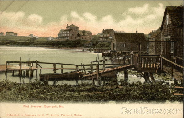 Front: 20 Fish Houses, Ogunquit, Me. Published in Germany for G. W. Morris, Portland, Maine. Back: Place the Stamp Here: One Cent for United States and Island Possessions, Cuba, Canada and for Foreign. 84665