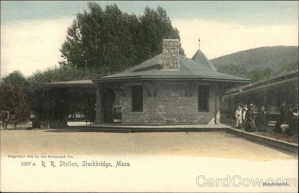 Front: Copyright 1905 by the Rotograph Co. 5267 a. ba R R. Station, Stockbridge, Mass. STOCKBRIDGE Handcolored. Back: The Rotograph Co., N. Y. City. (Germany.) 50 Two cents