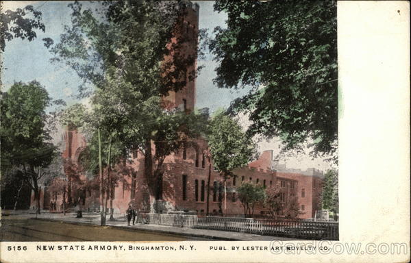 Front: 5156 IN NEW STATE ARMORY, BINGHAMTON, N. Y. PUBL. BY LESTER ART NOVELTY CO. Back: 1,00 DOMESTIC AND Two CENTS
