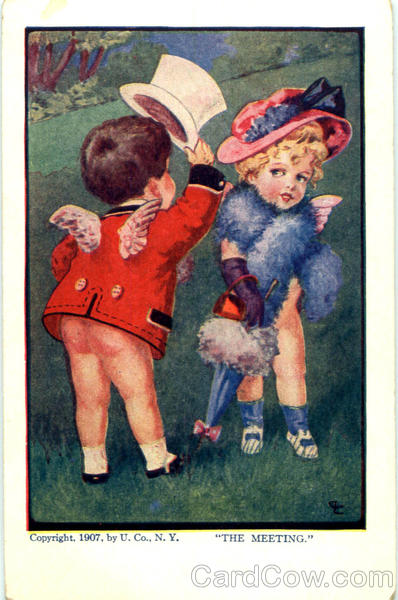 Front: Copyright, 1907, by U. Co., N. Y. "THE MEETING." 또 Back: 4- This space may be used for Correspon- dence This space is for the 542
