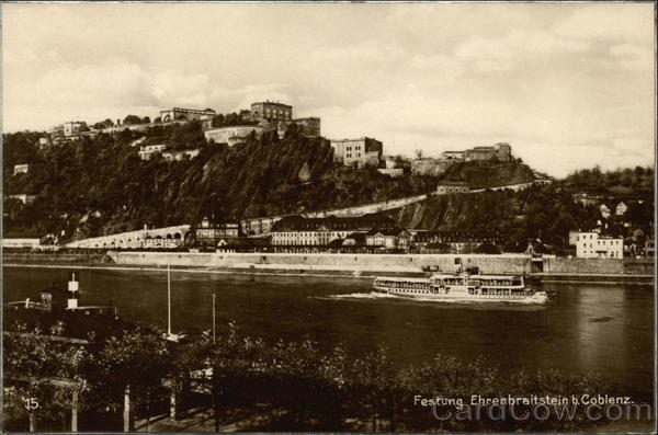 Front: 15. ⠀- Festung Ehrenbreitstein b. Coblenz. Back: PHOTOGRAPHIE ECHTE Trinks & Co., G. m. b. H., Leipzig. Ges. gesch. TRINKS-POSTKARTE