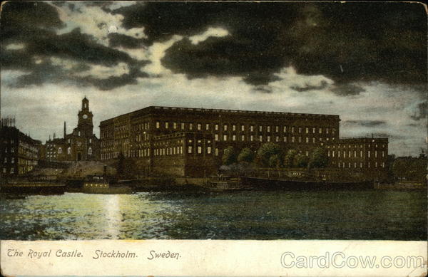 Front: ****** ***** Che Royal Castle. Stockholm. Sweden. FIRE ||||||| TITI! Back: -... BREFKORT. POSTKARTE. CARTE POSTALE. Axel Eliassons Konstförlag Stockholm 4010