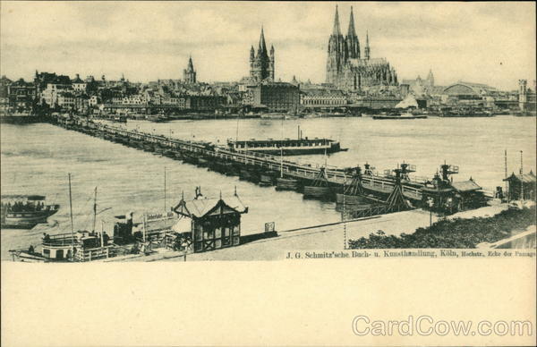 Front: THE RA L'ES Utf Ueberfahrt Koln X11 J. G. Schmitz'sche. Buch- u. Kunsthandlung, Köln, Hochstr., Ecke der Passage Back: Poſtkarte.