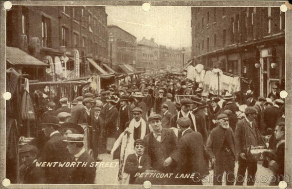 Front: WENTWORTH STREET HUR ***** PETTICOAT LANE. Back: ENGLAND. IN E. L. P. Co. SERIES. This space may be used for communication. STAMP.