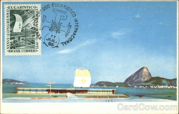 Front: EUCARISTICO. XXXVI CONGRESSO Cr$140 INTERNACIONAL 1955 RESSO BRASIL CORREIO. TANEIRO EUCARISTICO 1000 JUL. 55 หลวง fo NEMÁMELISSA Back: 40 Altar Monumento do XXXVI Congresso Eucaristico Internacional Rio de Janeiro Bier ·