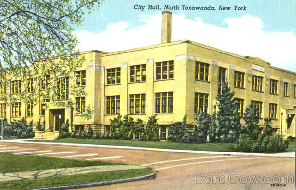 Front: City Hall, North Tonawanda, New York 88160-N Back: DISTRIBUTED BY HOWARD LA GROU, I EAST SWAN ST., BUFFALO, N. Y. la GENUINE CURTEICP-CHICAGO C.T. AMERICAN ARTPOST CARD (REG. U.S. PAT. OFF.)