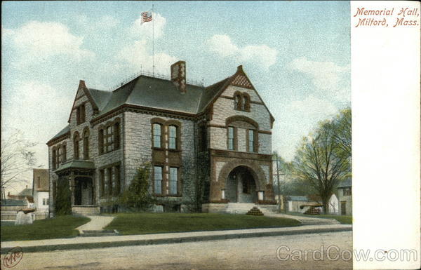 Front: CONS Me Memorial Hall, Milford, Mass. Back: Me M... -2 No. 9244. The Metropolitan News Co., Boston. Mass, and Germany. IN SPACE BELOW MAY BE WRITTEN SENDER'S NAME AND ADDRESS (NO OTHER WRITING)
