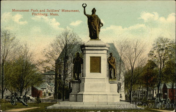 Front: Monument Park and Soldiers' Monument, Fitchburg, Mass. 81-74 Back: PUB. BY J. I. WILLIAMS, WORCESTER, MASS. No. 5012 SA PIDE Mt THIS SPACE MAY BE USED FOR MESSAGE FOREIGN- TWC CENTS. J. WESLEY MILLER THIS SPACE OR THE CORESS