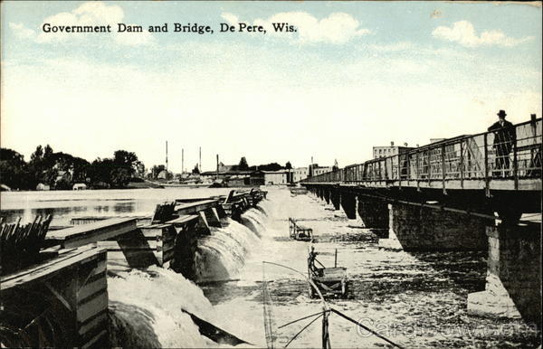 Front: Government Dam and Bridge, De Pere, Wis. orthda AFFA Back: Pub. by Arent's Drug Store. No. 9827 C9