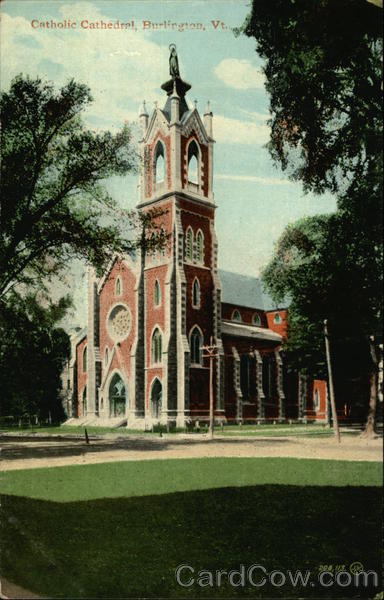 Front: Catholic Cathedral, Burlington, Vt. BARR ETITIE Carrim De 208,113. (J.M. Back: The Leighton & Valentine Co., N.Y. City. THROUGHOUT TRADE MARK. QUALITY FAMOUS THE WORLD CARD