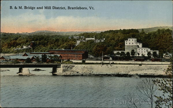 Front: B. & M. Bridge and Mill District, Brattleboro, Vt. **** ARD Back: PUBLISHED BY E. J. FENTON & CO., BRATTLEBORO, VT. CHICAGO A-42478 2.22 کی