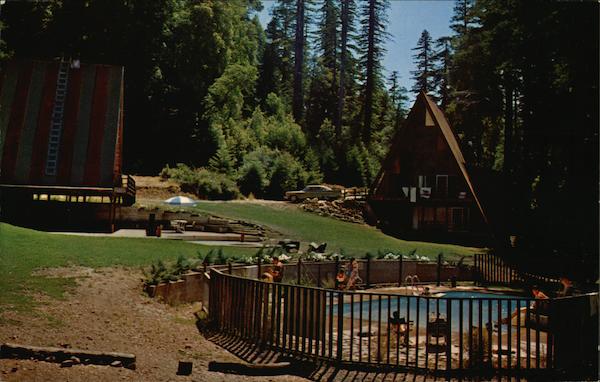 CABANA HOLIDAY-on the Redwood Highway near Piercy, California. A complete resort with A- frames and individual Cabanas amid 20 acres of ancient redwoods. SC8202 U.S.A.