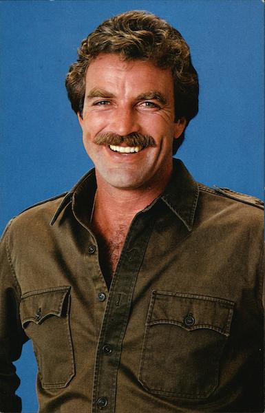 TOM SELLECK CL/Personality #111 SC18198-Colorphoto: © Jim McHugh/Contact 1983 P.O. Box 314, Rancho Cordova, CA 95670 Published by Coral-Lee TM Mike Roberts Color Productions Oakland, CA 94623 U.S.A.