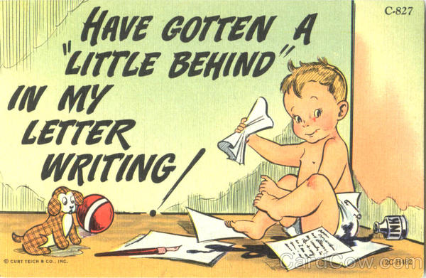 C-827 HAVE GOTTEN A "LITTLE BEHIND AW NI LETTER WRITING/ © CURT TEICH & CO., INC. 2C-H482 INI