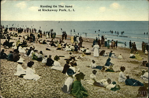 Front: Resting On The Sand at Rockaway Park, L. I. Back: Published by S. Hirshberg, Rockaway Beach, L. I. For Correspondence only DOST OST ARD For Address only