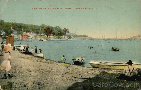 Front: THE BATHING BEACH, PORT JEFFERSON, L. 1. çal *** Back: HR PORT JHL 23 PM 4093-Card N. Miss Lizzie Rebitech Merschen bt L
