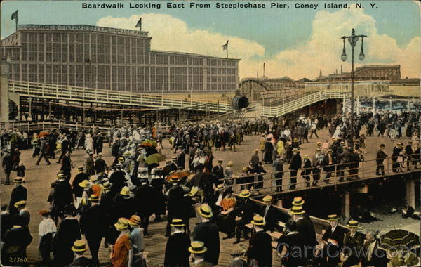 Front: Boardwalk Looking East From Steeplechase Pier, Coney Island, N. Y. GEORGE C TILYOU'S 21360 TEEPLECHASE PARK ***** ook wood ser er spe 201 HILM 4 Back: Pub. by Manhattan Post Card Co., New York City. MADEMUSA STAMP HERE