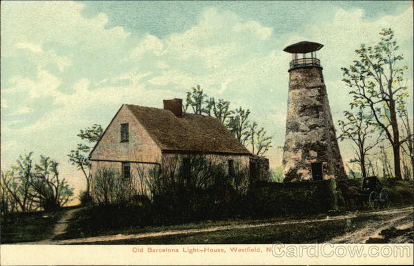 Front: Old Barcelona Light-House, Westfield, N. Y. Back: Published by Lamb & Cowan, Westfield, N. Y. No. C8755 LEIPZIG BERLIN BRESDEN LITHO-CHROMEO United States and Island Possessions, Cuba, Canada and For all other Countries TWO CENTS