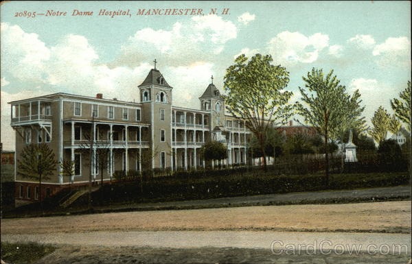 Front: 20895-Notre Dame Hospital, MANCHESTER, N. H. [LL Back: Souvenir Post Card Co., New York Printed in Germany. TWO CENTS