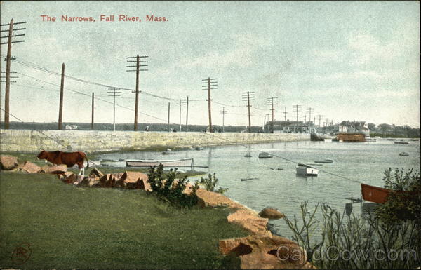 Front: The Narrows, Fall River, Mass. 144 |||| 10 Back: F. 10309 Publ. by Robbins Bros. Boston, Mass. and Germany. Co STAMPHERE TWO CENTS