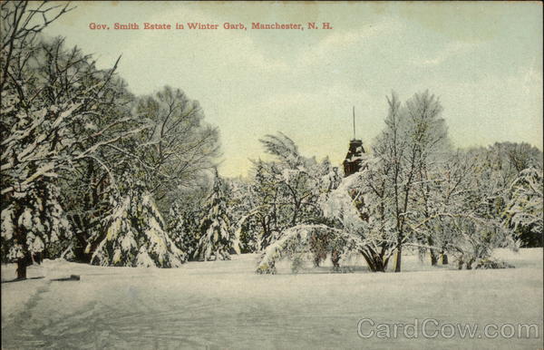 Front: Gov. Smith Estate in Winter Garb, Manchester, N. H. Back: John B. Varick Co., Publishers, Manchester, N. H. Made in Germany.. 130811