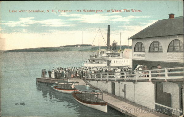 Front: Lake Winnipesaukee, N. H., Steamer "Mt. Washington " at Wharf, The Weirs. 68101 ET TA ICE CREAM PARLOR BI POST CARDS SOUVENI Back: Pub. by The Atkinson News Co., Tilton, N. H. No. 2534 Write Message here. Island Mexican 1c. Foreign 2c.