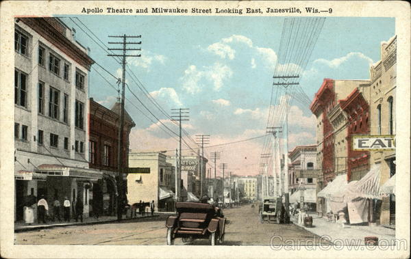 Front: J IN Apollo Theatre and Milwaukee Street Looking East, Janesville, Wis.-9 ALP ATTONS AL-PROOF UFFER GE EAT Back: E. C. KROPP CO., MILWAUKEE 300 264 K. Co