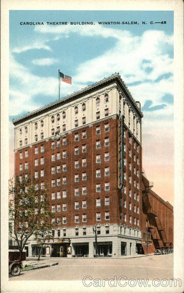 Front: CAROLINA THEATRE BUILDING, WINSTON-SALEM, N. C.-45 686 88 EE ## ## EXE EE EEE EE EE EE EEE EE EE 111 SUNON- FOT Back: -2 MADE IN U.S.A. BY E. C. KROPP CO., MILWAUKEE 4681 N 475.6 TO ANYWHERE IN U.S. VIA AIRMAIL C8.