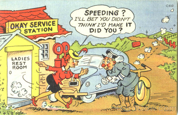 C-810 OKAY SERVICE STATION SPEEDING ? I'LL BET YOU DIDN'T THINK I'D MAKE IT DID YOU ? LADIES REST ROOM ఇలంకి CURT TEICH & CO ING 2C-H294
