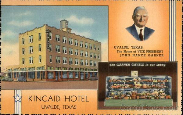 The Home of Vice President John Nance Garner The Garner Gavels in our Lobby Convenient to Garner Home and State Park. More miles of fresh water fishing than in any other county in Texas, Largest Fish Hatchery in the Southwest Salesman's Sample |