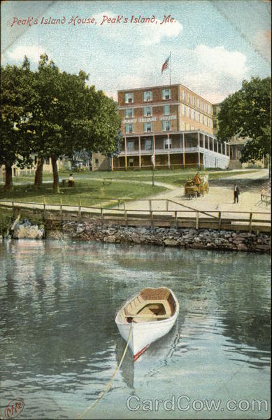 Front: Peak's Island House, Peak's Island, Me. We AHA EAKS ISLAND HOUSE LILLO Back: No. 7833. We TRADEMARK Post Card & TWO CENTS