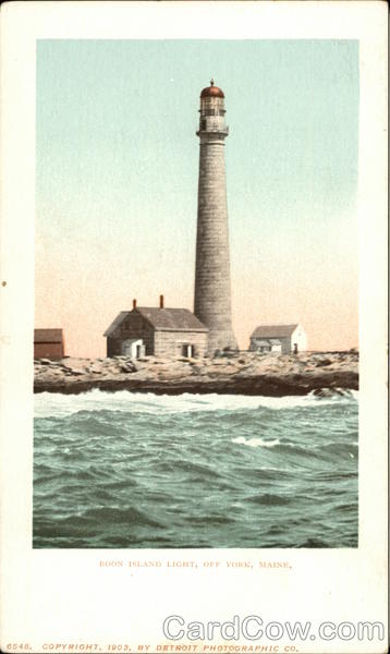 Front: BOON ISLAND LIGHT, OFF YORK, MAINE, 6548. GOPYRIGHT, 1903, BY DETROIT PHOTOGRAPHIC CO. Back: MH 3000 AND CANADA, FOREIGN, Two CENTS. 01951
