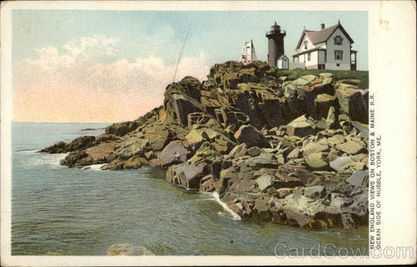 Front: NEW ENGLAND VIEWS ON BOSTON & MAINE R.R. OCEAN SIDE OF NUBBLE, YORK, ME. Back: FOREIGN, TWO CENTS.