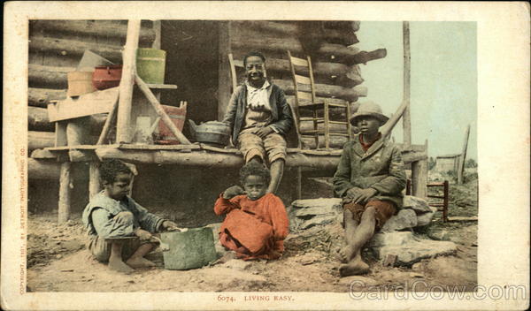 Front: 6074. LIVING EASY. COPYRIGHT, 1901, BY DETROIT PHOTOGRAPHIC CO. Back: AND CANADA, FOREIGN, Two CENTS.
