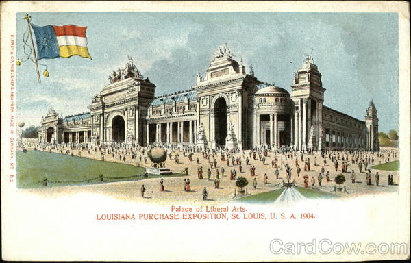 Front: E.FREY & CO, PUBLISHERS. NEW YORK.MADE IN GERMANY:NO 62 4. 쌈디 100003 Palace of Liberal Arts. LOUISIANA PURCHASE EXPOSITION, St. LOUIS, U. S. A. 1904. 요오브 Back: *Post Card. 2429 DOMESTIC. FOREIGN. TWO CENTS.
