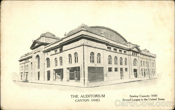Front: 16 11 THE AUDITORIUM CANTON. OHIO. Seating Capacity 5000 Second Largest in the United States Back: Poste-Card. Here