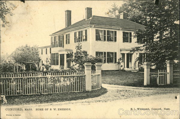 Front: || Dh CONCORD, MASS. HOME OF R: W. EMERSON. H. L. Whitcomb, Concord, Mass. Back: Raphael Tuck & Sons' Post Card Series No 2127. "CONCORD, Mass. ART PUBLISHERS TO THEIR MAJESTIES THE KING AND QUEEN TRAOL MARK ARTISTIC RS
