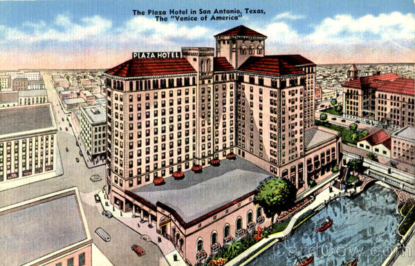 Front: The Plaza Hotel in San Antonio, Texas, The "Venice of America" PLAZA HOTEL Back: 2512 The Air Conditioned Plaza Hotel, on the bank of the river in downtown San Antonio. со —MADE IN USA BY E C. KROPP CO., MILWAUKEE, WIS - (CJY) —